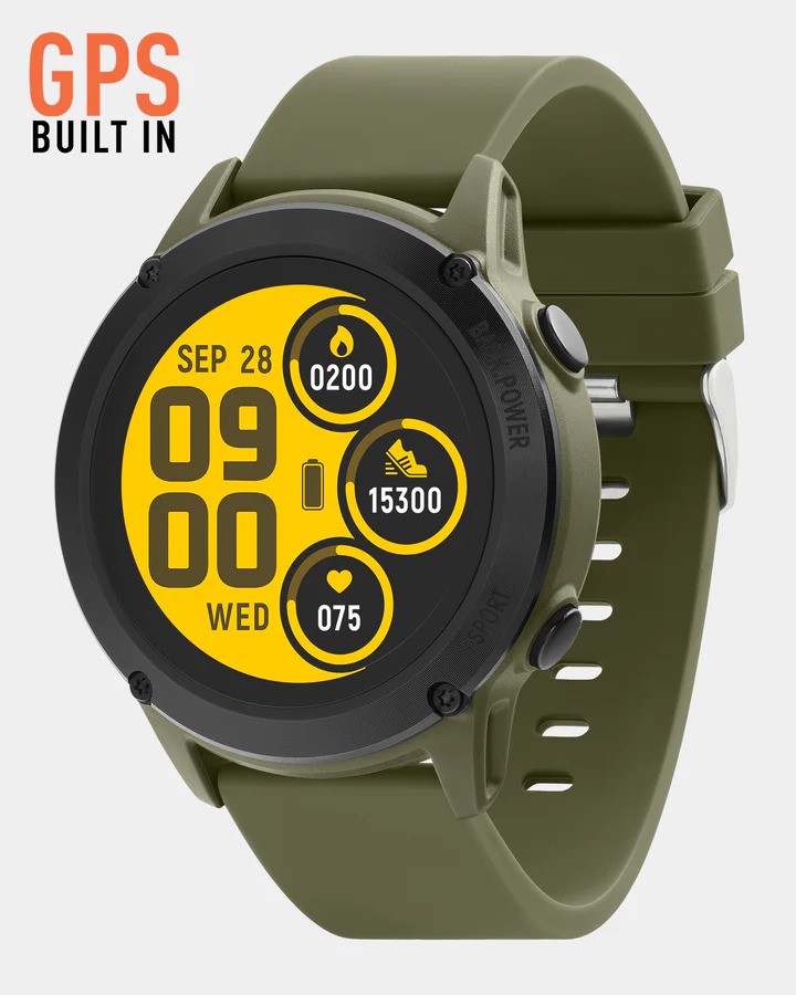 Our comfortable, Khaki sports silicone strap is designed for all-terrain adventure.