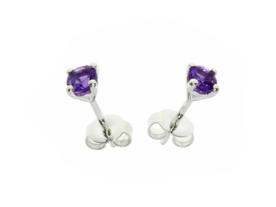 February Birthstone Amethyst Sterling Silver Stud Earrings