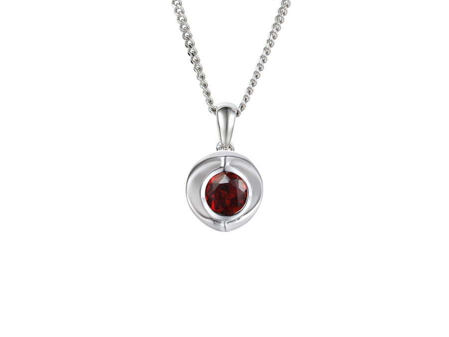 Bright red garnet is the showpiece of this beautiful birthstone pendant. The vibrant colour promotes safe travel, deep love and a return home. It adds a fascinating dimension to any outfit and comes with an adjustable 16 to 18in silver curb chain. You won’t find it around town, and it’s an Amore Argento production.