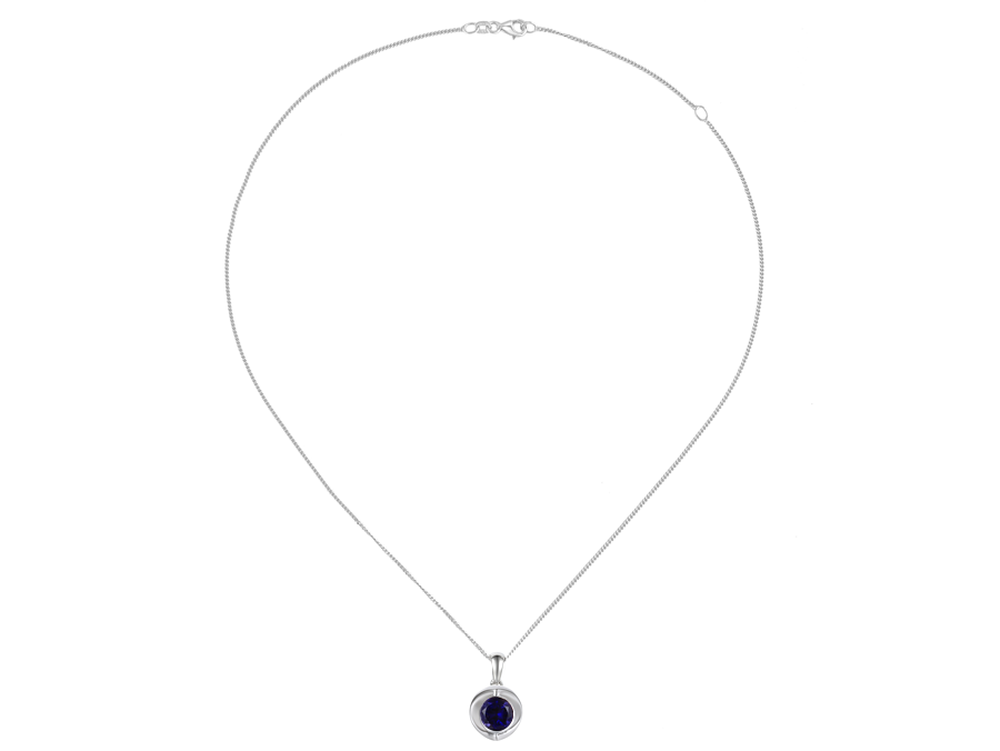 Bright Iolite is the birthstone of this pendant necklace. The vibrant hue promotes the elements of achievement and curiosity. It’s purplish, deep blue tinge is reputed to strengthen the eyesight. Complete with an adjustable 16 to 18in silver curb chain, this necklace is the finishing touch of any outfit. You won’t find it around town, and it’s an Amore Argento production.