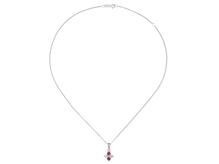 his simple but elegant design combines silver with vibrant red rubies and beautiful glittering cubic zirconia. Beautifully faceted brilliant-cut cubic zirconia and deep red precious ruby gemstones ensure a radiance and shimmer guaranteed to turn heads. Comes with a 16" to 18" adjustable silver curb chain. This stunning necklace looks fabulous and is a perfect addition to both your working and weekend wardrobes. Why not match this necklace to the earrings.